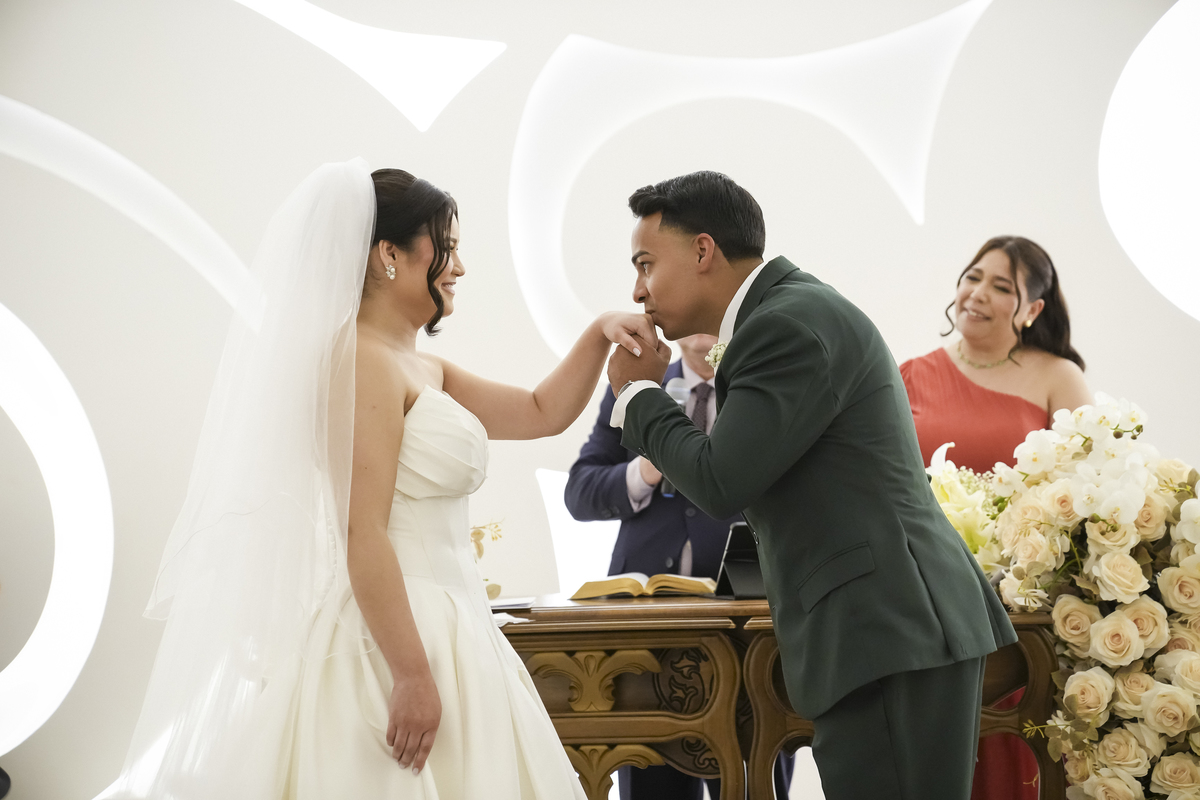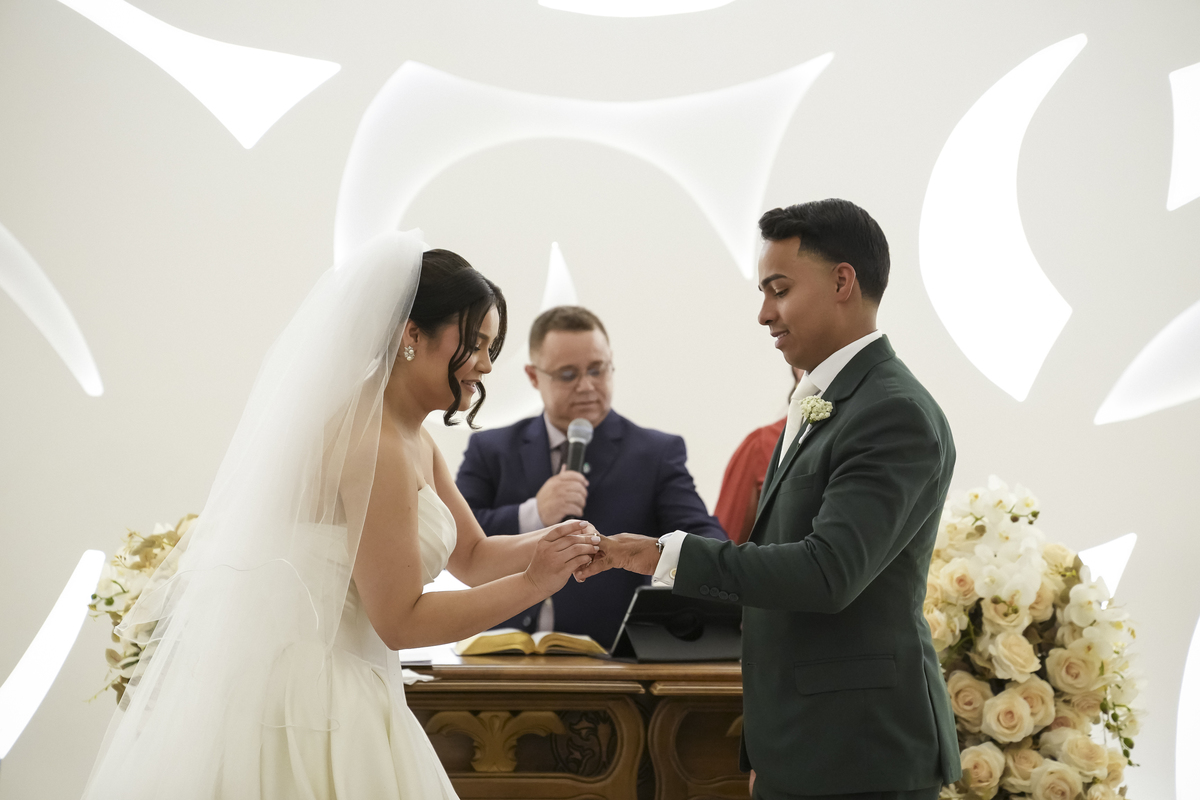 A cerimônia foi emocionante do início ao fim. Daquelas que fazem o coração acelerar e os olhos se encherem de lágrimas. O Elias, visivelmente emocionado, aguardava sua noiva com aquele sorriso que diz tudo — amor, admiração e a certeza de que estava vivendo um dos momentos mais importantes da sua vida.
